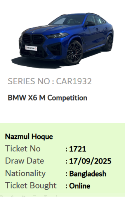 BMWのX6のM Competitionの新車価格を調べてみると、2118万円♪ 素適なお値段♪ バングラデシュの人が当てたようです。2000人が買って、この人が見事にゲット♪