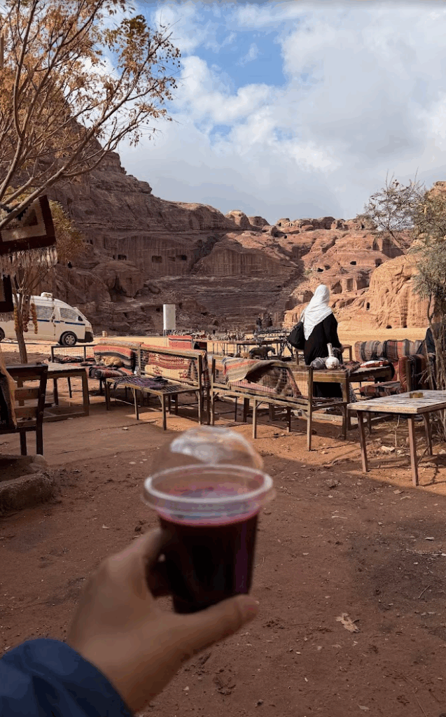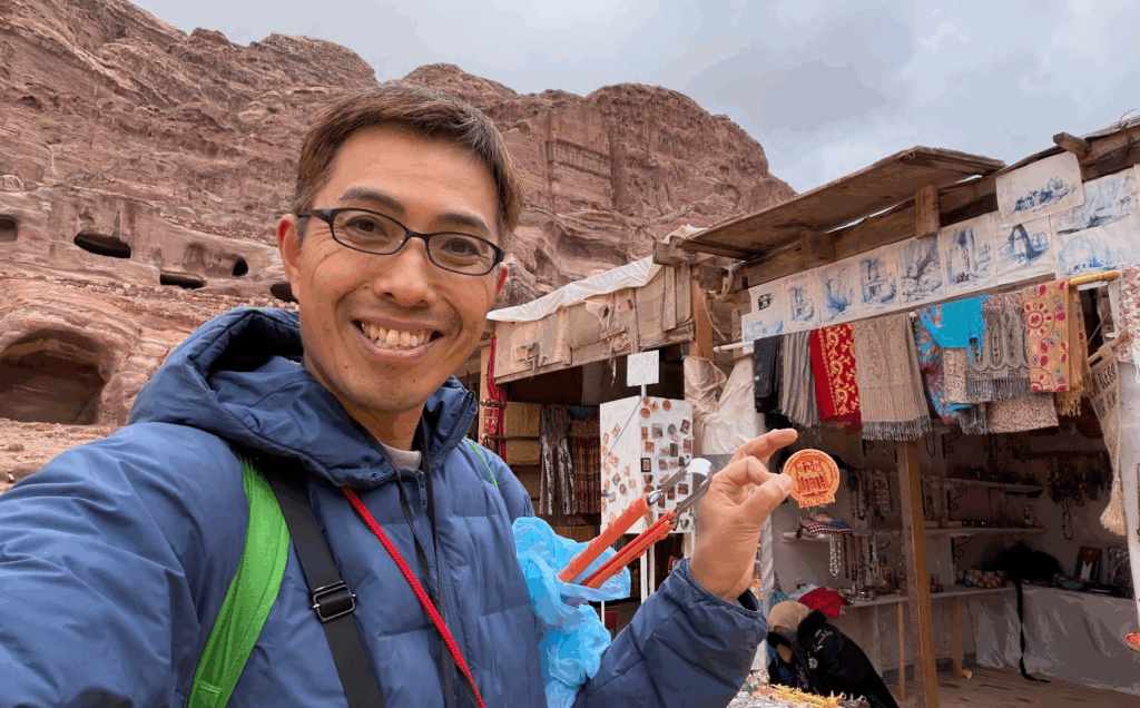 ゴミ拾いをペトラ遺跡でしていると、たくさーんの人から声をかけられました。そのうちの1人が、お土産屋さんの店員さん。