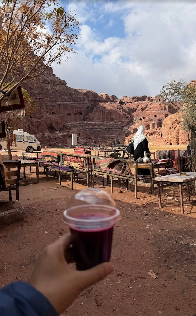 茶屋で一服。生搾りザクロジュースをいただきます♪ ザクロは、中東でよく採れるので、ジュースも美味しい♪