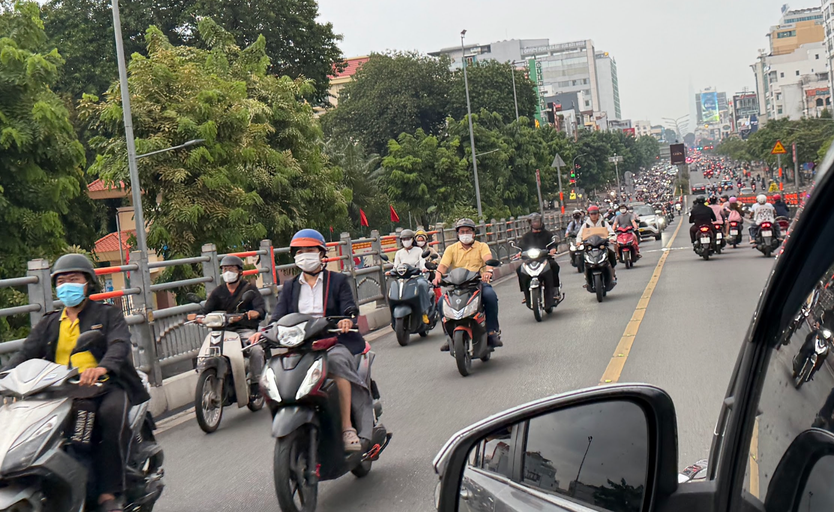 ちょうどベトナム人の小学生たちの帰宅の時間です。送迎は、ほぼバイク。これがベトナムの風物詩。バイクの後ろに乗せて、家に連れ帰ります。