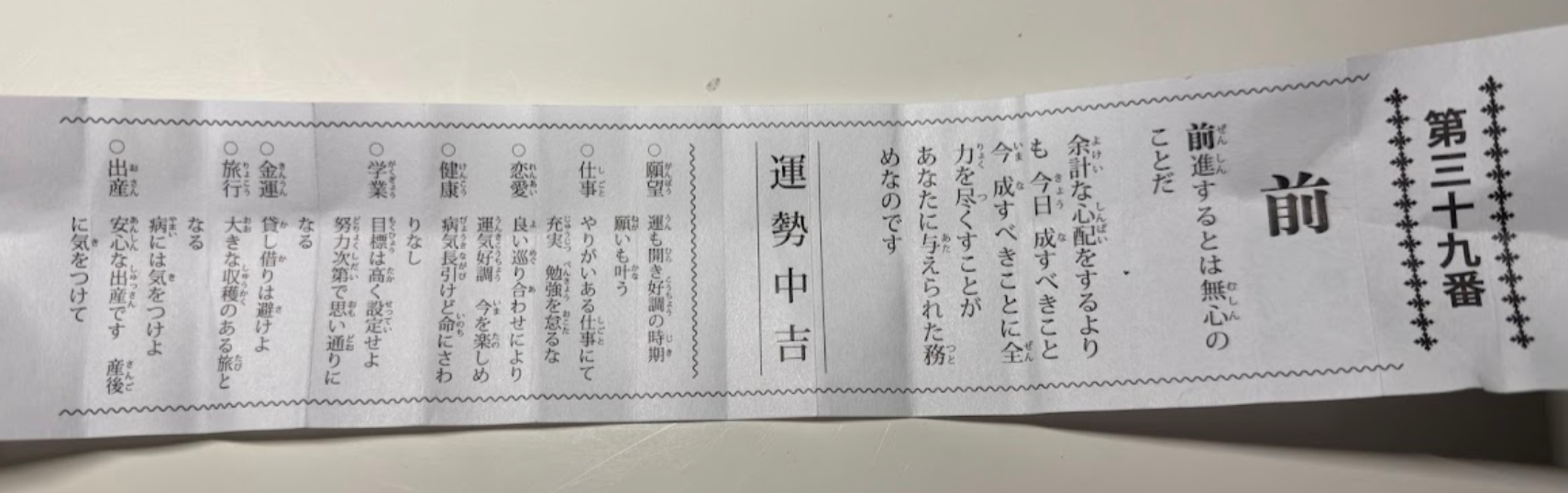 普段は、私はおみくじを引くことはあまりしません。占いもしません。悪い予言は、潜在意識に入ってくるので、現実がその通りになりやすいからです。