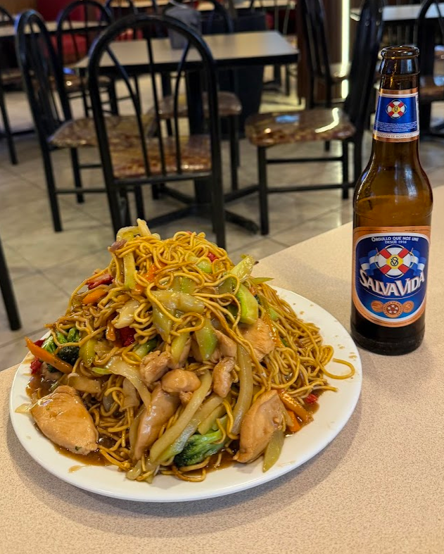 ホンジュラス料理、中米料理には、あんまりそそられないので、ホテルの近所の中華料理屋さんに来ました。ここで五目そばを頼むと、ド山のような量・・・。前もって、店員さんに、